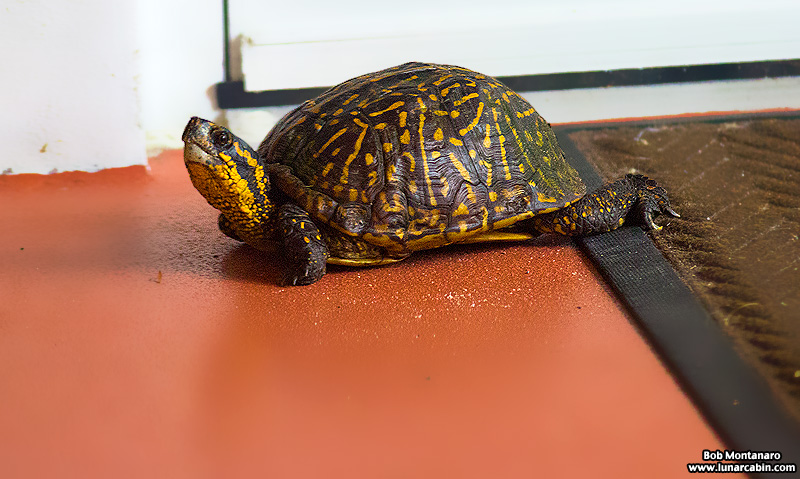 A Box Turtle stops a moment from walking through the breezeway at Audubon House at the Oslo Riverfront Conservation Area. It seemed very curious about the place.