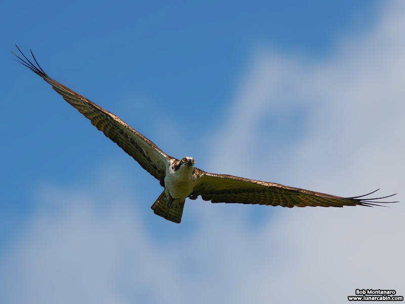 An Osprey soaring through blue skies at Pelican Island National Wildlife Refuge.