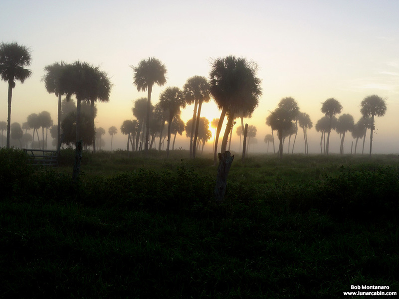 A detail from a panorama of a foggy sunrise in the cattle pastures at Treasure Hammock Ranch. Click to view the panorama. Remember to scroll right!
