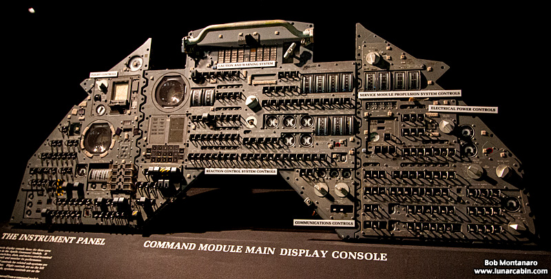 The Command Module instrument panel that controlled all aspects of the flight to the Moon and back. Apollo 11 Command Module Pilot Mike Collins would operate the spacecraft for a time by himself while his two crew mates journeyed down to the lunar surface. Generally, it was a team effort by all three astronauts to pilot the spacecraft.