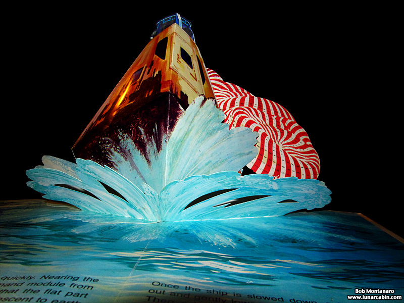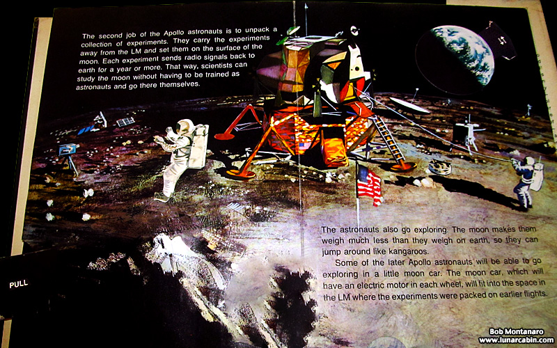 One of my favorite pages. Probably because of the Lunar Module orbiting over the Moon at the end of a stiff wire that pops up over the page.