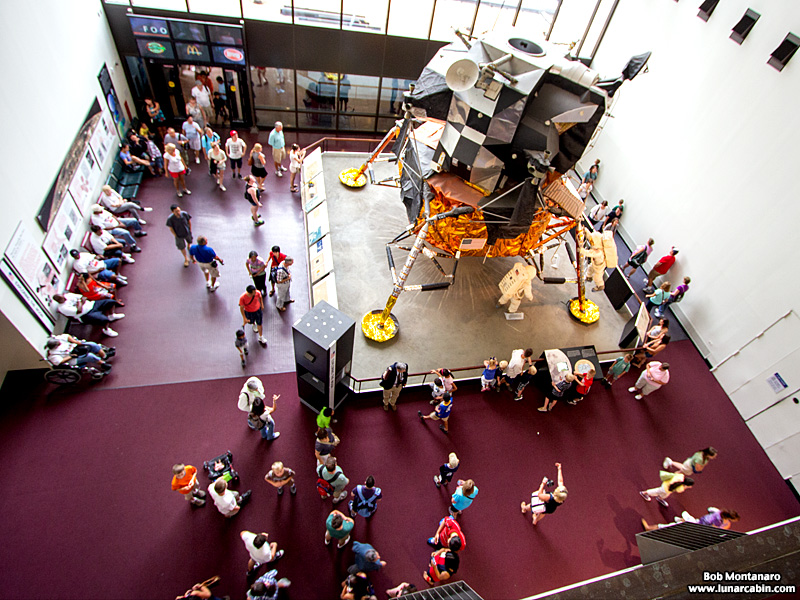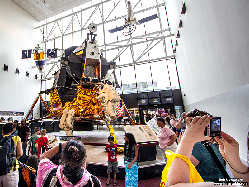 Lunar Module-2 built my Grumman Aerospace Corporation in the mid-1960s was held by NASA as a spare if the unmanned test flight of Lunar Module-1 was not successful. Following the successful completion of that flight, there was no longer an urgent need to fly LM-2 in space so the vehicle remained Earthbound and was used in integration testing with other components of the flight hardware, especially the Saturn V rocket. By 1969 NASA had no further need for LM-2 so it was whisked off to be part of the Apollo display at the 1970 World’s Fair in Osaka, Japan. LM-2 returned to the United States where it went on display at the National Air and Space Museum in Washington, D.C., representing the landing site of Apollo 11 complete with two astronauts. My most recent visit saw LM-2 looming over the entrance and exit to the food court. Today it has been refurbished and moved to a more prominent position in the Museum befitting its important role representing the actual Lunar Modules that safely carried Apollo astronauts to the surface of the Moon and back again to reunite with their orbiting Command Modules.