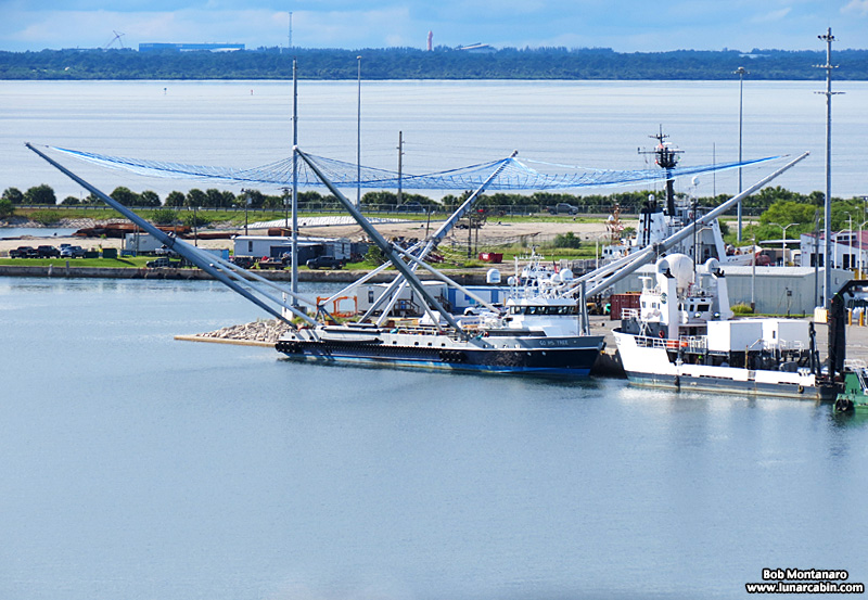 To understand the purpose of this odd looking ship docked at Port Canaveral is to recognize that rocket fairings cost upwards of $6 million a piece. Until recently these important covers of the Falcon 9 rocket’s payload, protecting the payload through the thicker parts of the Earth’s atmosphere as the rocket roared upward, were simply allowed to crash at their own leisure into the ocean once they were jettisoned as the rocket moved up out of the thickest part of the Earth’s atmosphere; their job done. SpaceX has decided there must be a cost-saving way to retrieve and reuse these rocket fairings, hence was born this ship. Originally known as Mr. Steven, its move to a new owner sees it joining the East coast SpaceX fleet as Go Ms. Tree. The nets strung out between the long arms are meant to catch the gently falling fairings, which SpaceX has equipped with parachutes and thrusters to ease the way down into the atmosphere to a gentle landing in the net as the ship maneuvers below to receive it. Alas, only one real catch can be attributed to Ms. Tree so far with the others landing in the ocean, but, with trial and error, we should not be surprised to see more successes in the future.