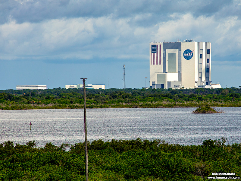 A unique view of the distant Vehicle Assembly Building at Kennedy Space Center taken from the rooftop of the Atlas Spaceflight Operations Center at Cape Canaveral Air Force Station shows in the foreground an Osprey nesting platform atop a pole. A small reminder that there is room for Ospreys in the Space Age provided for by the fish-filled waters of Cape Canaveral.