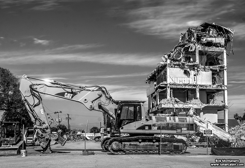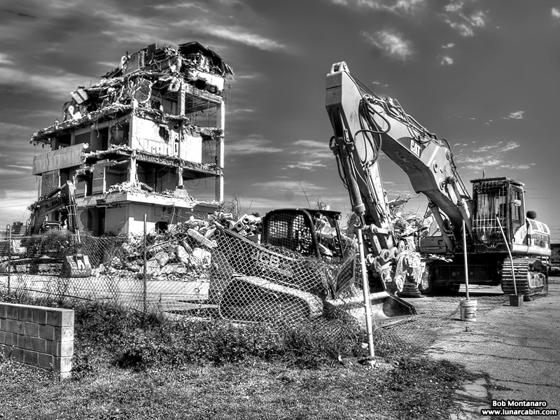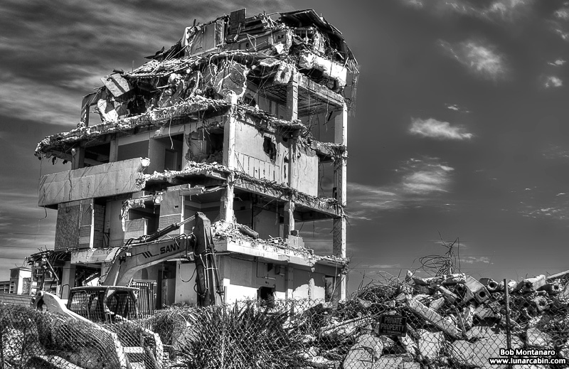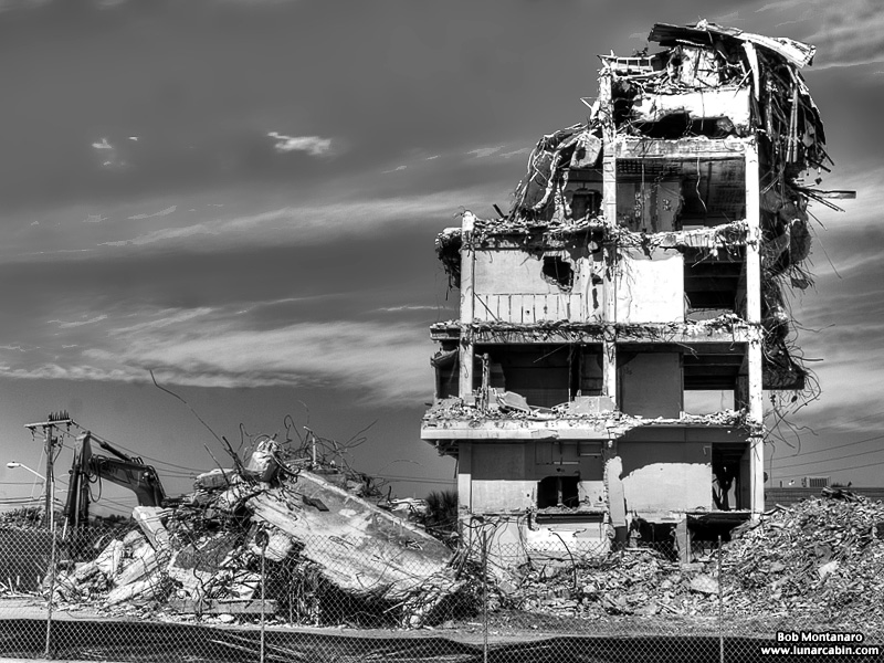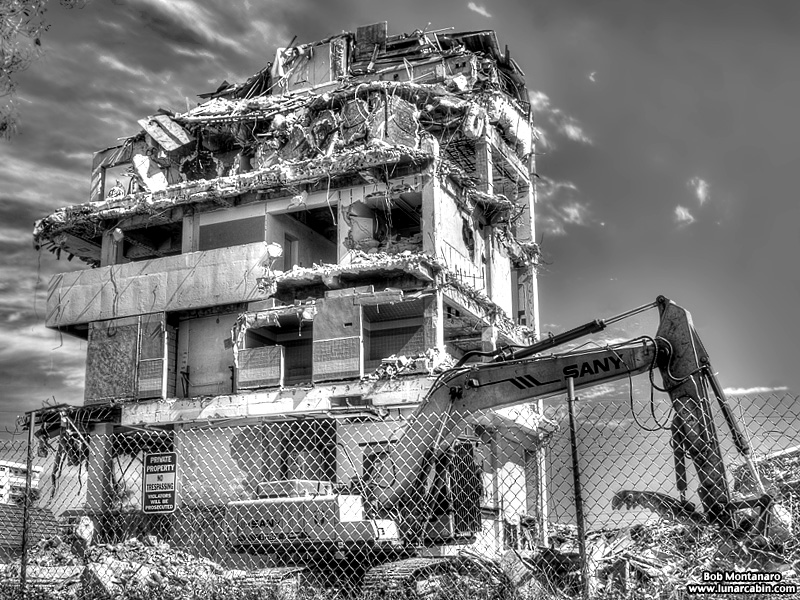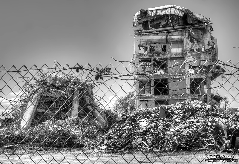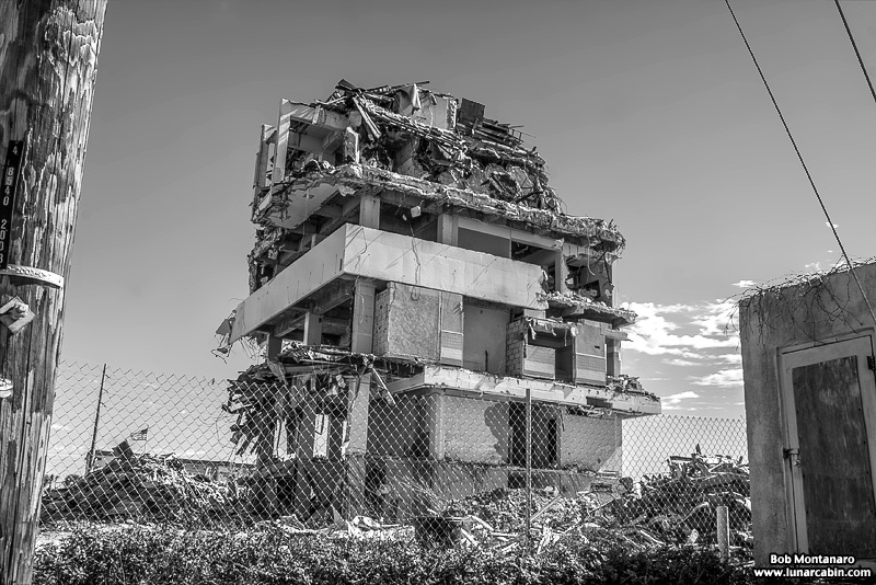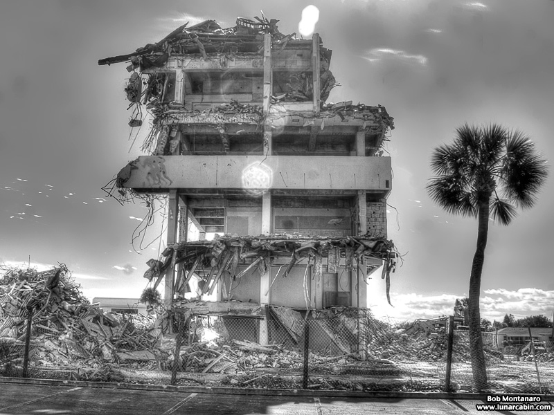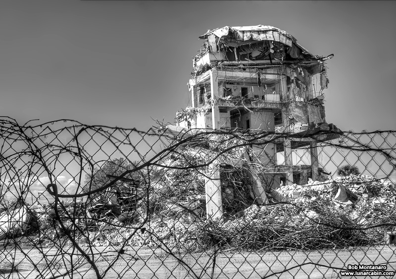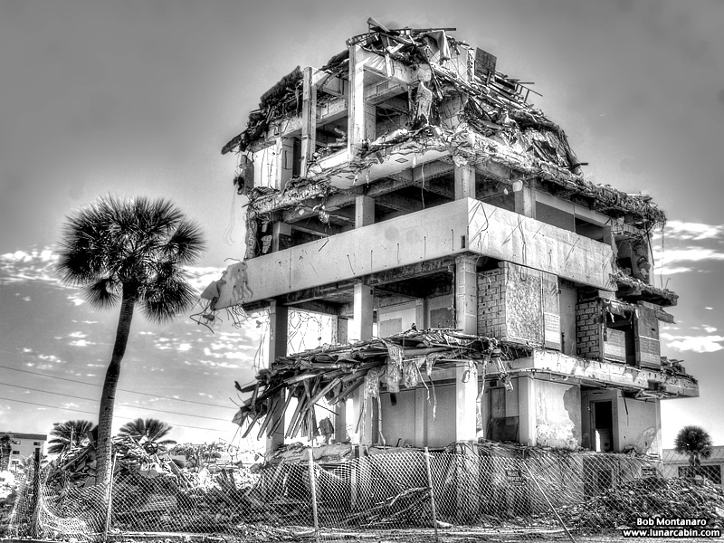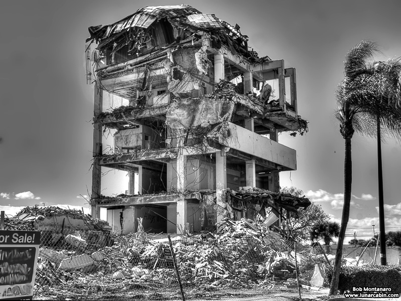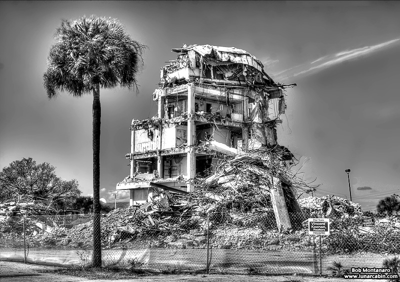 The Glass Bank demolition in Cocoa Beach looks good in color but even better in black and white! The building is almost down in these views from a walk around of the site.