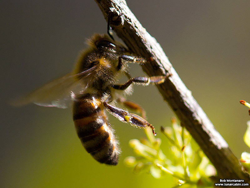 At the Oslo Riverfront Conservation Area today where I shot more bees on privet. And Sam enjoyed the warm Sun in the cool, winter air.