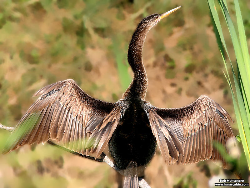 The long sinuous neck of the Anhinga lives up to its nickname of snakebird like this female at Pelican Island National Wildlife Refuge. The long dexterous neck comes in handy when pursuing fish underwater for a meal but the waterlogged feathers don’t help. After emerging from the water, the bird opens its wings to help dry them faster.