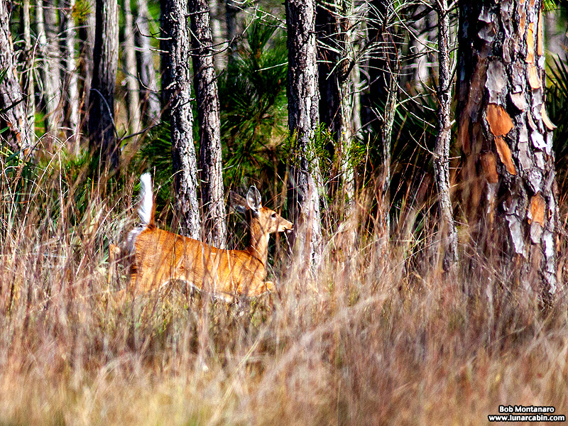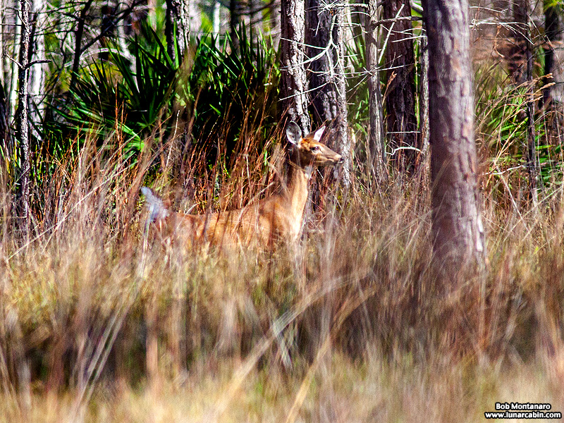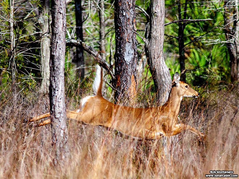 A pair of White-tailed Deer passed my photo blind at St. Sebastian River Preserve State Park. The first one bounded by so energetically it looked like it was flying.