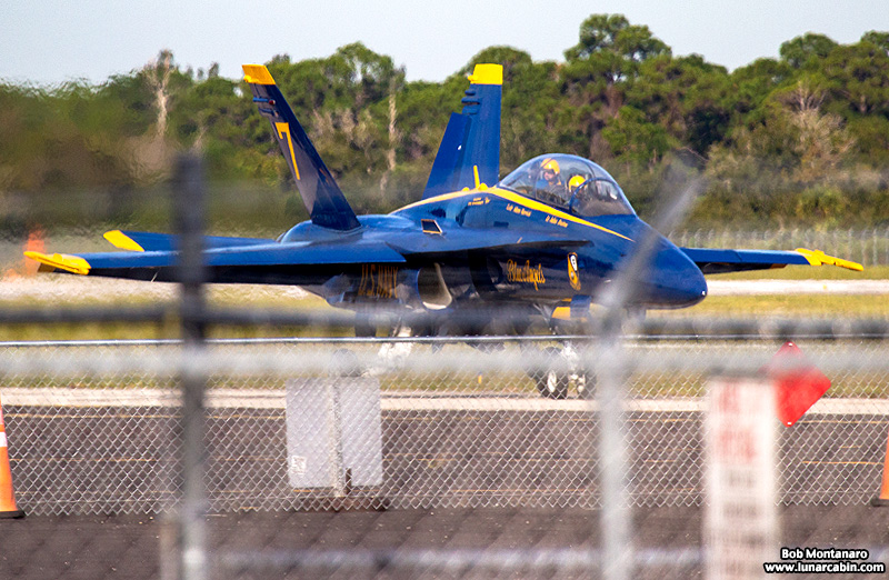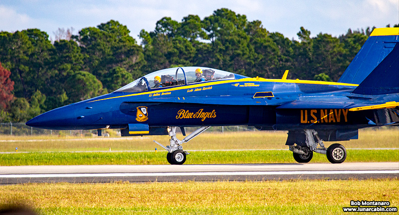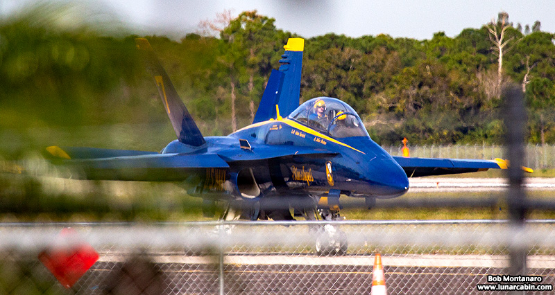 A lone U.S. Navy Blue Angels Boeing F/A-18 Hornet visited Vero Beach Municipal Airport on 25 November 2019 for a business meeting in preparation for the Vero Beach Air Show on 25 & 26 April 2020 when the Blue Angels flight demonstration team will perform. The Hornet circled the airfield once before landing.