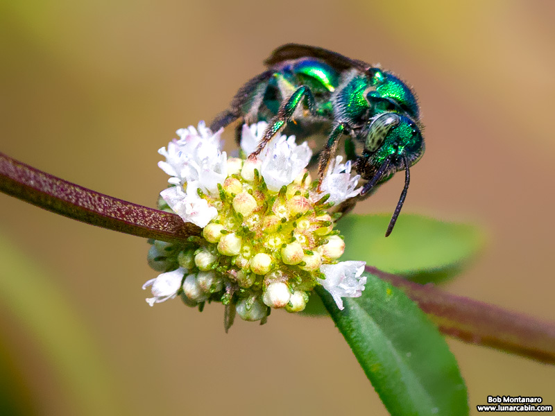 A Green Orchid Bee foraging on a flower at the Oslo Riverfront Conservation Area. They may not be native to Florida, but they have certainly found an unobtrusive place for themselves in the environment.