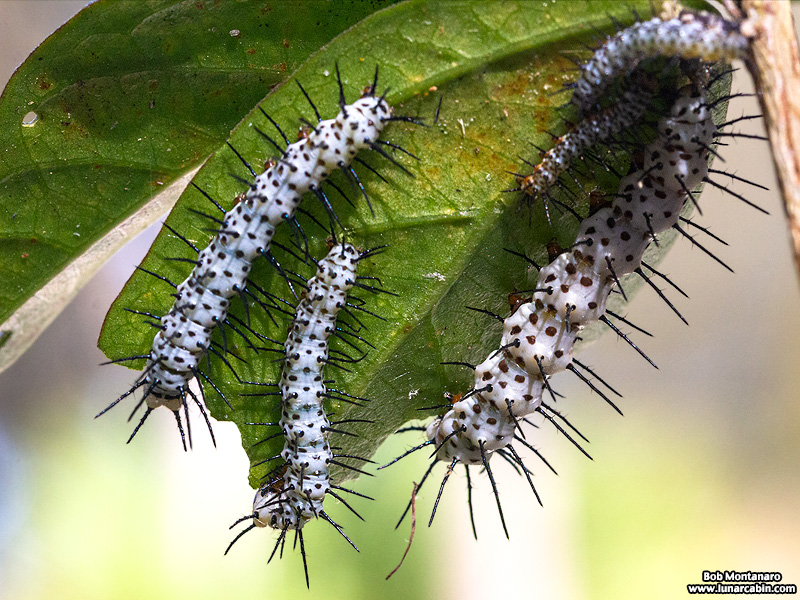 A horde of Zebra Longwing larvae come together on the few leaves left on the passionflower vine they have mostly consumed. Once these leaves are gone these caterpillars will have to come up with a new plan for a meal. It looks like they may have some traveling in their future.