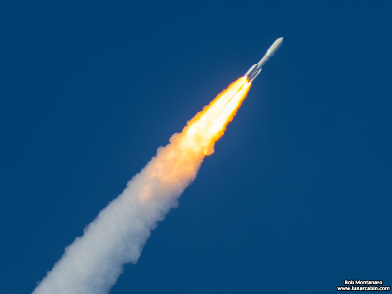 A hot and hazy day made for murky launch photos as a United Launch Alliance Atlas V rocket carried into orbit the first mission for the U.S. Space Force on 26 March 2020 at 4:18 p.m. from Cape Canaveral Air Force Station. The sixth launch of an Advanced Extremely High Frequency communications satellite went off without a hitch after a slight delay and as the rocket climbed higher above the hazy ground into clearer air the view became much better as can be seen above.