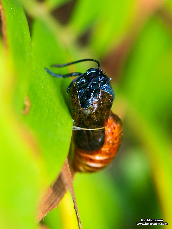 An Atala butterfly begins to emerge from its chrysalis attached to a leaf of the Coontie plant. The Coontie plant is all things to the Atala. A place to lay its eggs, a grocery store for the caterpillars to consume its leaves, a quiet place to form a chrysalis to carry out metamorphosis. Then a place to return to later in life to lay eggs to start the process all over again.
