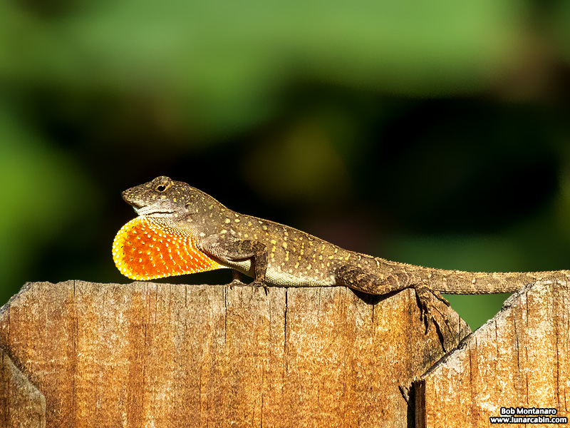 The Cuban Anole’s dewlap is extended via a flexible bone as a warning to others or to attract a mate or to just make them feel good about themselves.