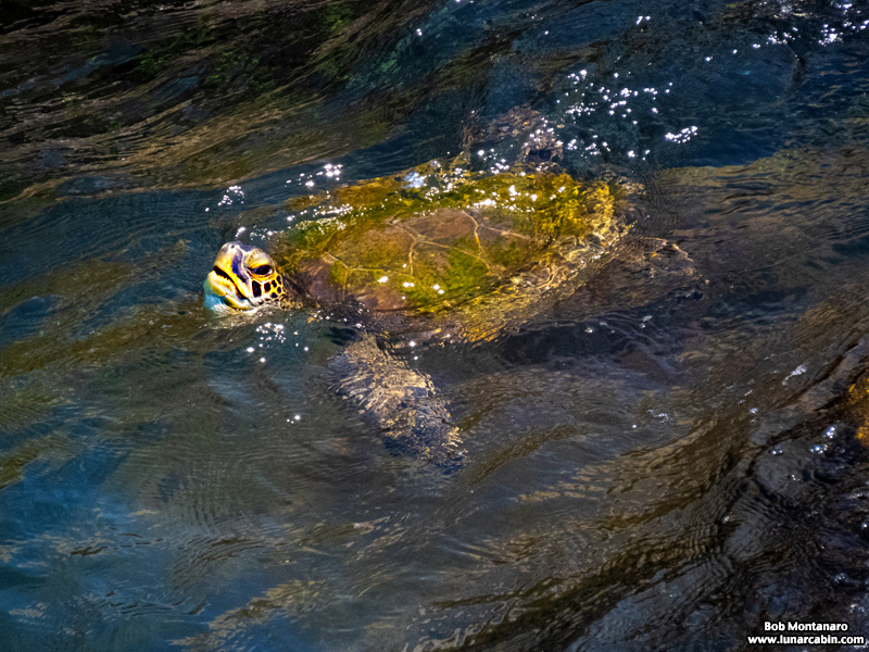 A juvenile Loggerhead Sea Turtle keeps to the safety of the rocks along the channel at Port Canaveral. A little bigger and wiser and it will take to the open ocean to live out its life.