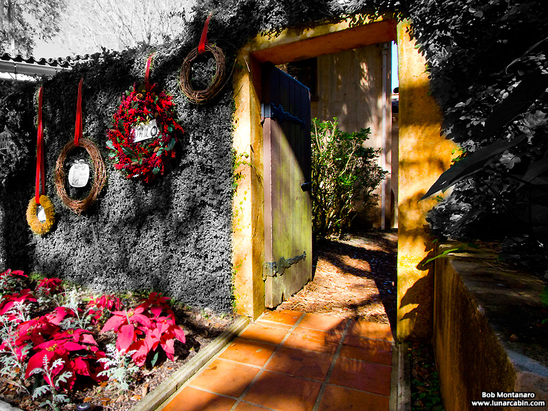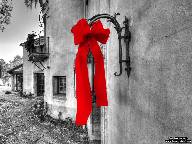 Red is the color of the season. Not so boring at this angle of the Estate though still in the backyard.