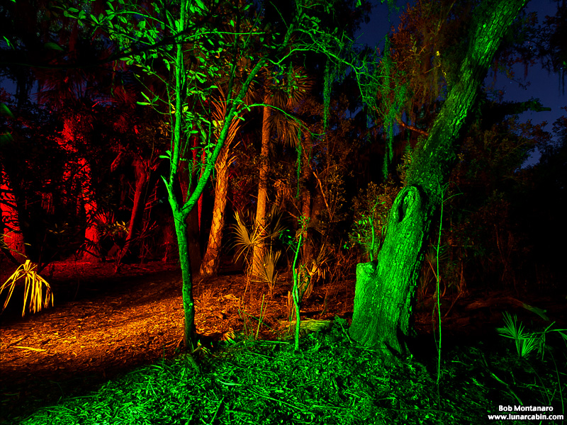 An illuminated landscape at the Oslo Riverfront Conservation Area. Without the light the area is almost pitch-black at night becoming acutely spooky with any odd sounds causing quite the chill.