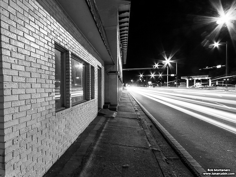 The Royal Park Arcade, AKA Parkway Plaza, is one of a number of rare buildings from the past to survive the wrecking ball in Vero Beach. Located between the old historic downtown and the Miracle Mile shopping complex, the Royal Park Arcade was built in 1925-26 in a late 19th & early 20th Century Mediterranean revival architectural style. Today it houses a couple of restaurants and some empty commercial space downstairs, along with apartments upstairs. The building was added to the National Register of Historic Places in 1998. The trend of the traffic flow on the adjoining US-1 is to pass the building by as seen in this time exposure image.