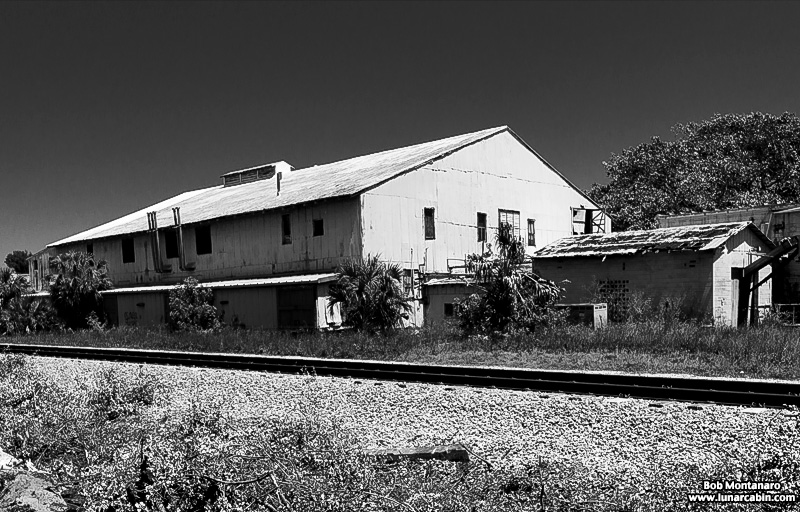 Derelict citrus packing house along the railroad tracks in Indian River County. Trains could be flagged to stop at this location in the now nonexistent town of Oslo.