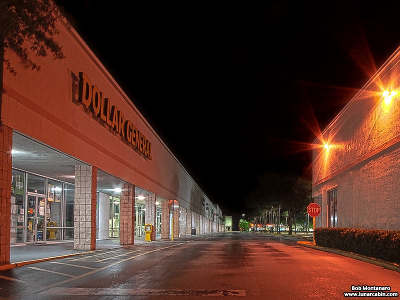 The north side of the Miracle Mile Shopping Center in Vero Beach seen in the darkness before dawn.