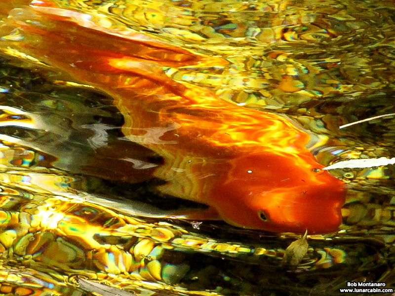 Successive waves break up the image of a Koi as it swims along the watery pathways in the University of Florida’s Butterfly Rainforest exhibit in Gainesville.