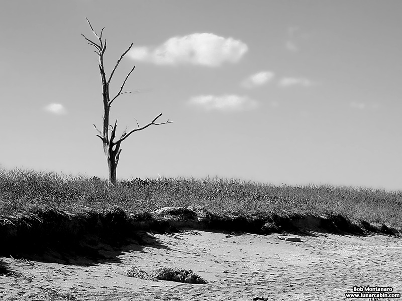 A solitary dead tree lives a hermit-like existence defying the elements at Blowing Rocks Preserve.