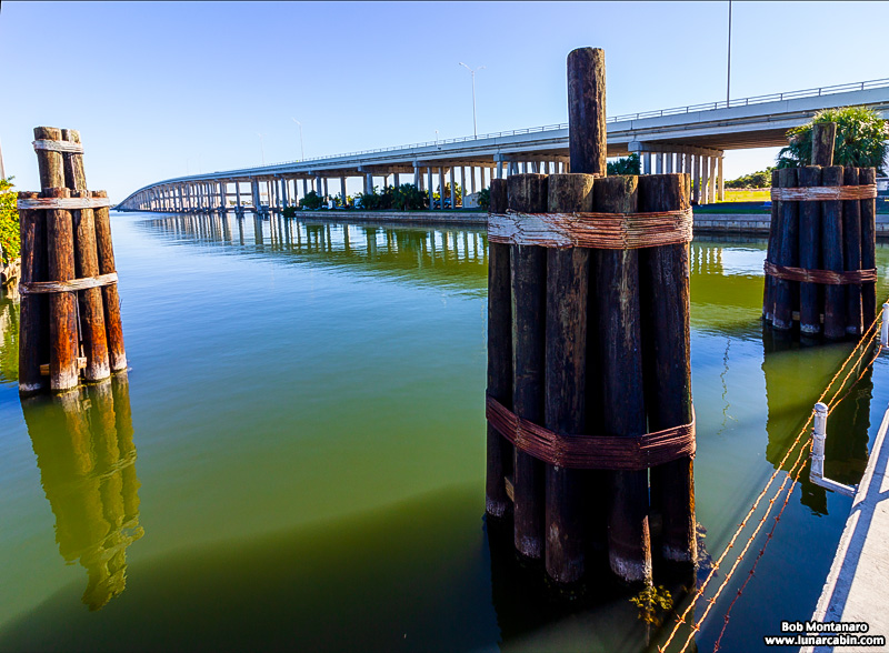 Barges came into this basin to unload oil to fuel the Vero Beach Municipal Power Plant when it was operational. The 17th Street Bridge crosses over the Indian River Lagoon in the background.