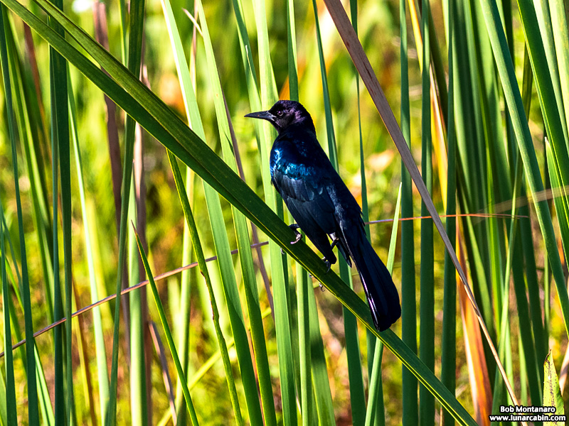 The glorious iridescence of the male Boat-tailed Grackle accentuated by the early morning light at the Stick Marsh.