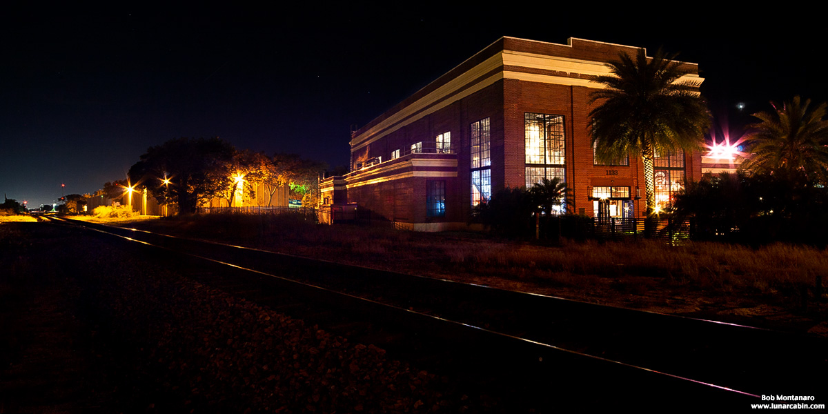 Florida East Coast Railway tracks pass through downtown Vero Beach by the old diesel power plant built in 1926 now renovated into the American Icon Brewery.