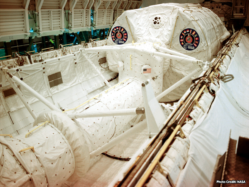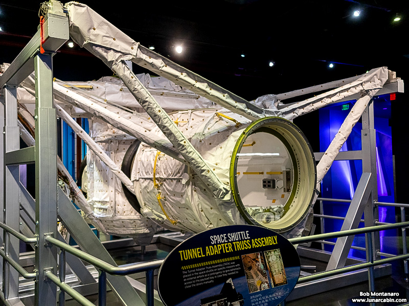 The Tunnel Adapter Truss Assembly (TATA) was placed in the Space Shuttle Orbiter’s cargo bay providing an extended pressurized atmosphere allowing the crew to transfer back and forth to pressurized modules in the cargo bay. A good example would be for Spacelab missions. The Tunnel Adapter allowed the crew to move from the mid-deck in the Orbiter to the Spacelab module installed in the cargo bay. An external airlock was part of the Tunnel allowing for spacewalks if required.