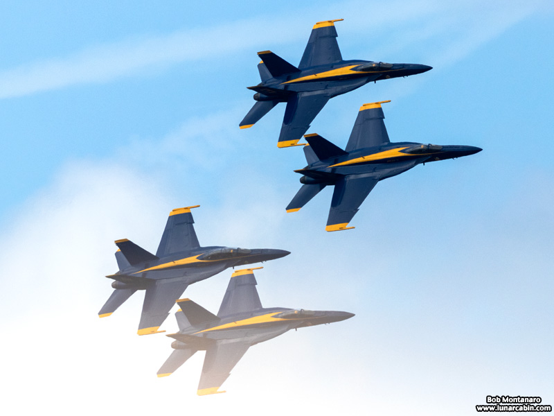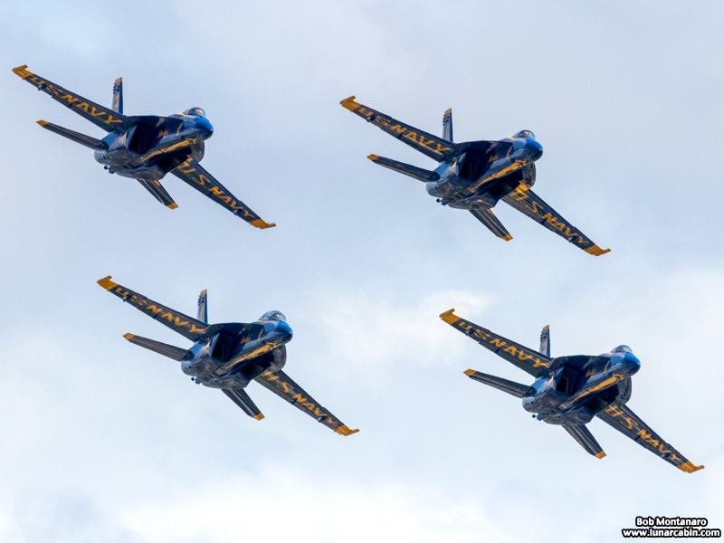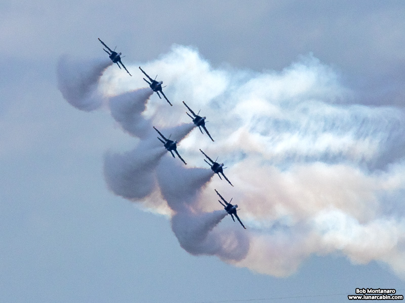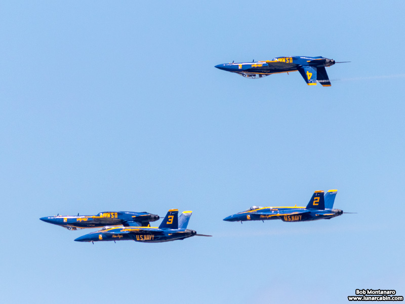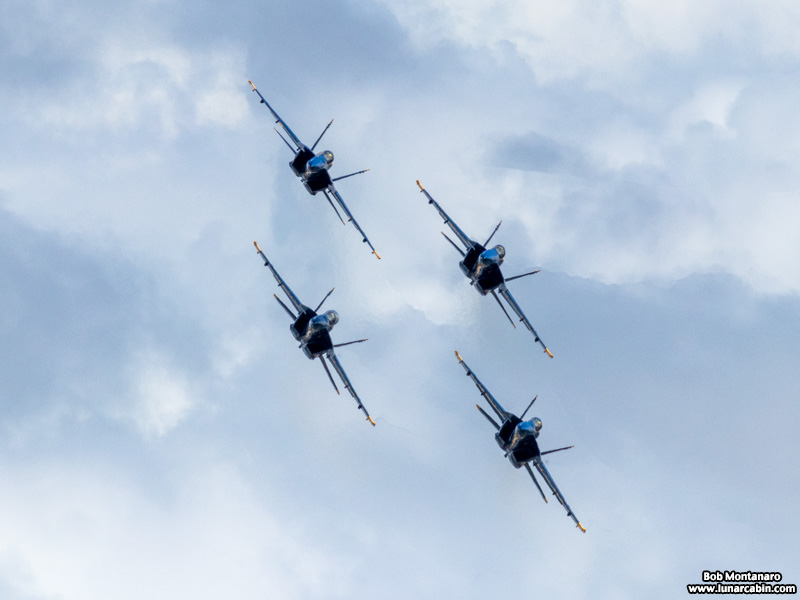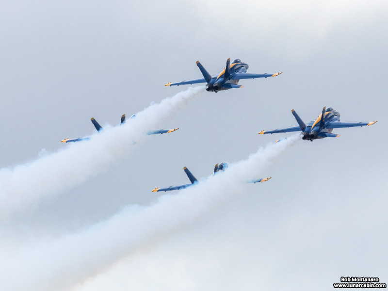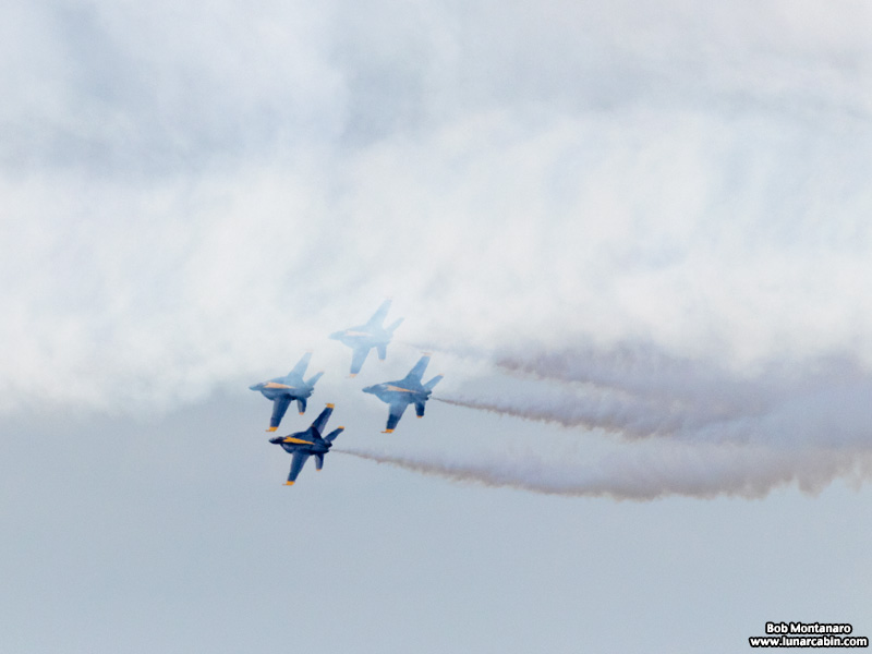 To be able to perform, the Blue Angels must have at least three nautical miles of visibility horizontally from centerpoint, and a minimum cloud ceiling of 1,500 feet, which the FAA can waive to 1,000 feet. At these minimums, the Blue Angels can perform a limited number of maneuvers in what is called a “flat” show. When the ceiling is at least 4,500 feet and visibility at least three nautical miles, a “low” show can be performed, which includes some rolling maneuvers. With a minimum ceiling of 8,000 feet and visibility of three nautical miles, the Blue Angels can perform their “high” show, which includes all the maneuvers.