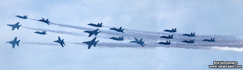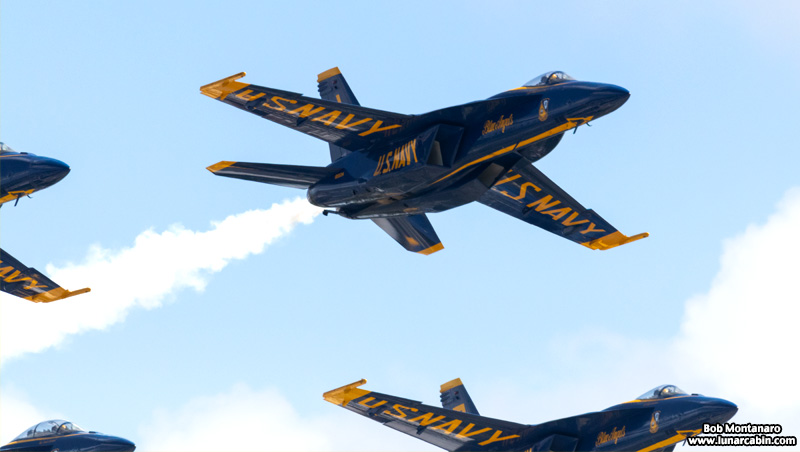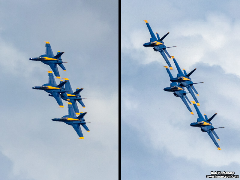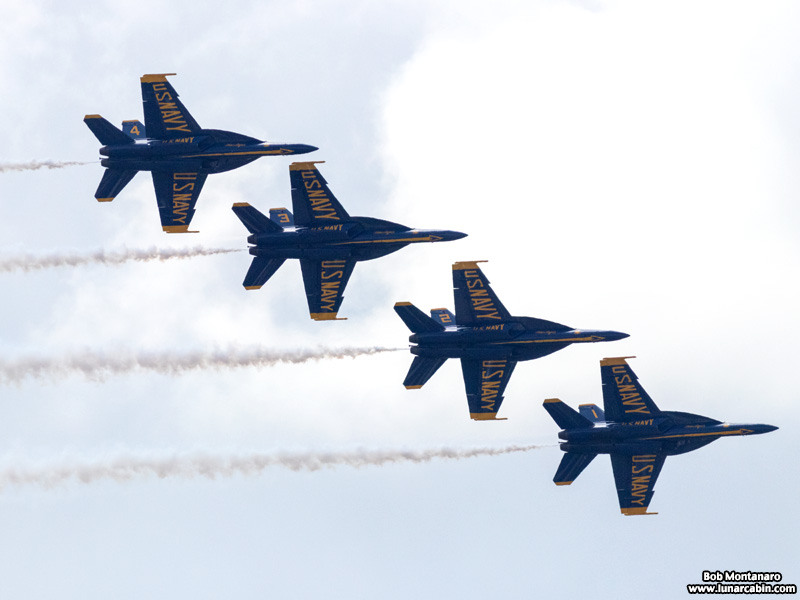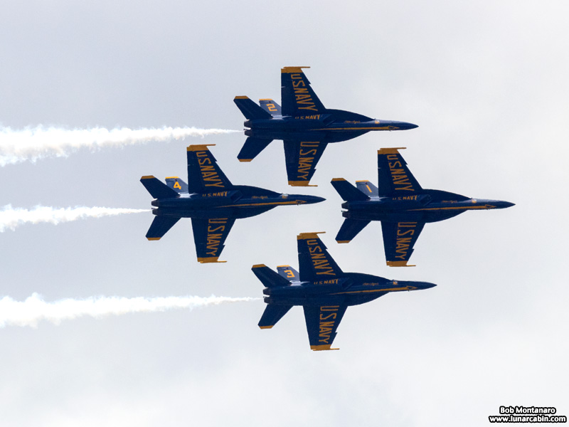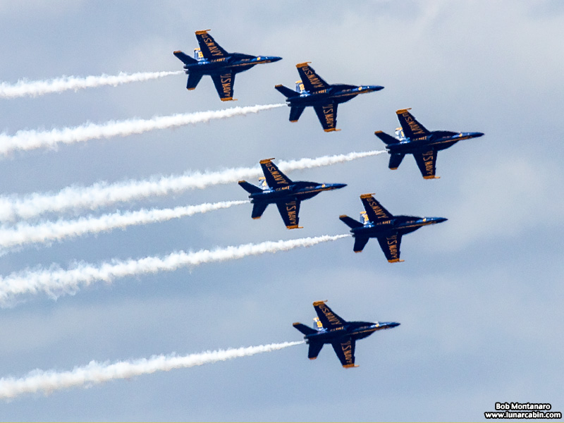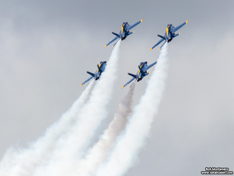 To be able to perform, the Blue Angels must have at least three nautical miles of visibility horizontally from centerpoint, and a minimum cloud ceiling of 1,500 feet, which the FAA can waive to 1,000 feet. At these minimums, the Blue Angels can perform a limited number of maneuvers in what is called a “flat” show. When the ceiling is at least 4,500 feet and visibility at least three nautical miles, a “low” show can be performed, which includes some rolling maneuvers. With a minimum ceiling of 8,000 feet and visibility of three nautical miles, the Blue Angels can perform their “high” show, which includes all the maneuvers.