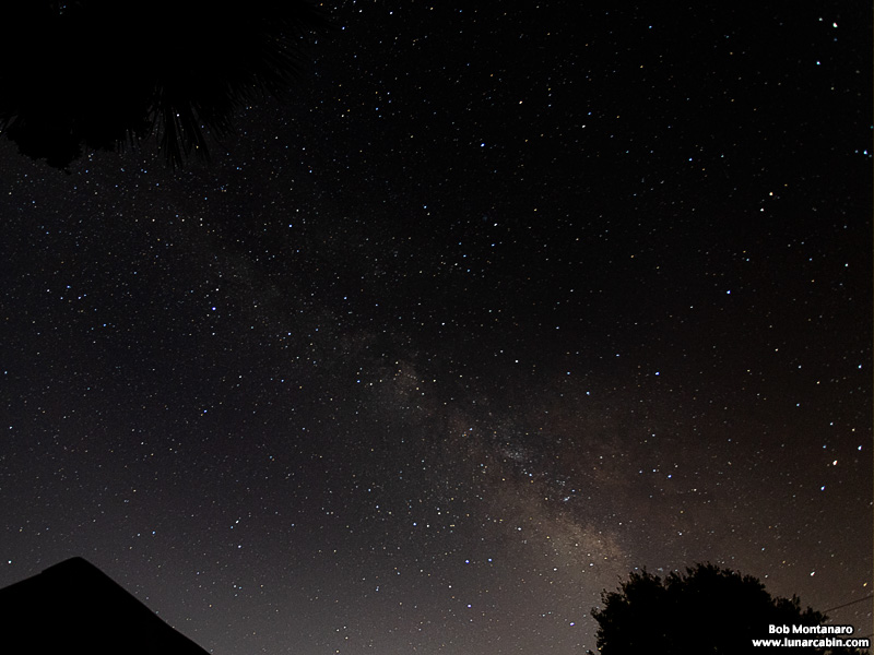 The star clouds and dust lanes of the Milky Way in the regions around the constellation of Sagittarius rises above the trees in this late night image from the backyard. The center of the Milky Way galaxy also lies in this direction making for a grand view. This impromptu image came about because of the announcement of a possible meteor shower caused by the broken up remains of Comet 73P/Schwassman-Wachmann 3 as the Earth orbited through the debris trail in the early morning hours of 30-31 May. According to NASA, the anticipated peak of the storm would be around 1AM so at 12:30AM I went outside and promptly saw two meteors streaking across the sky almost side by side. Hurrying inside, I retrieved my camera gear and set up during which a very bright meteor streaked across the sky. At this point I started taking 30 second exposures of the sky, a long series of them finally totaling almost 150 images. Once the shutter was open to record the night sky, not one meteor made an appearance neither to my eye nor to the camera. So I ended up with a lot of starry images of the night sky sans meteors. This is one of them. Next time I am hoping there will be a meteor streaking across the image. And all this on a work night when I have to be up early the next day.