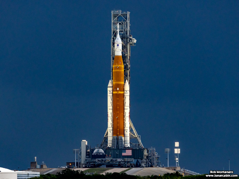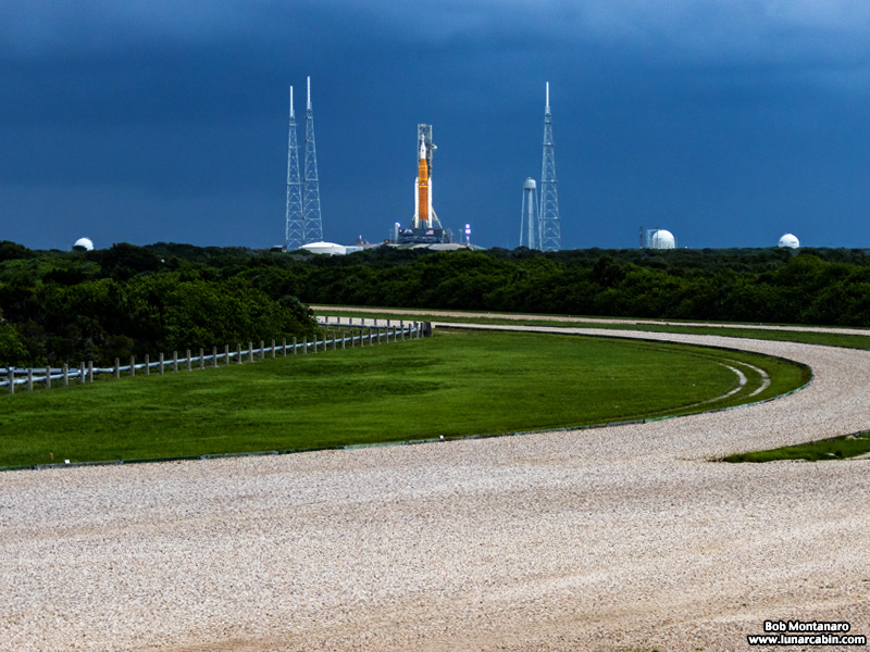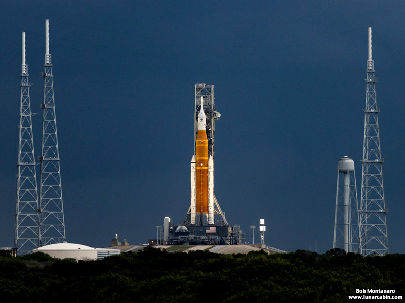 Images of the Space Launch System Artemis 1 rocket at Launch Complex 39B at Kennedy Space Center taken during the late afternoon of 30 June 2022 as a storm moved in.