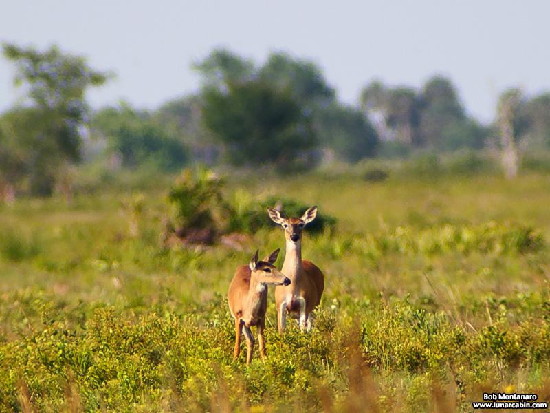 Heat radiating from the land distorts the atmosphere in this late afternoon image of deer on a very hot Florida summer late afternoon.
