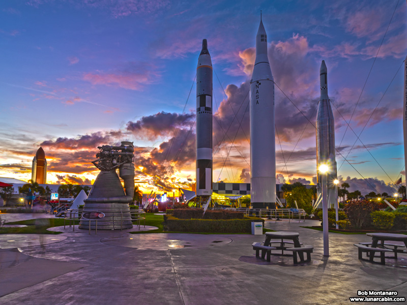 An overwrought HDR image of the eastern sky brightening at dawn after several hours of darkness waiting in the Rocket Garden at Kennedy Space Center Visitor Complex for the scrubbed launch of Artemis 1.
