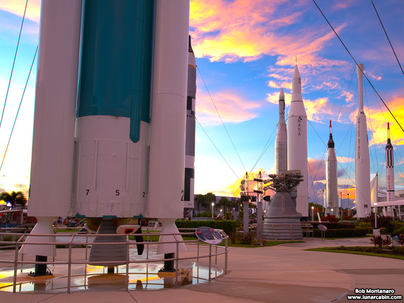 Another overwrought HDR image taken at dawn in the Kennedy Space Center Visitor Complex Rocket Garden while waiting for the launch of Artemis 1.