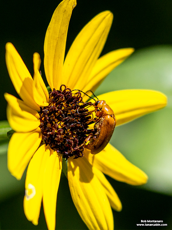 A Soldier Beetle forages through the flowers in the Audubon House landscaping at the Oslo Riverfront Conservation Area.