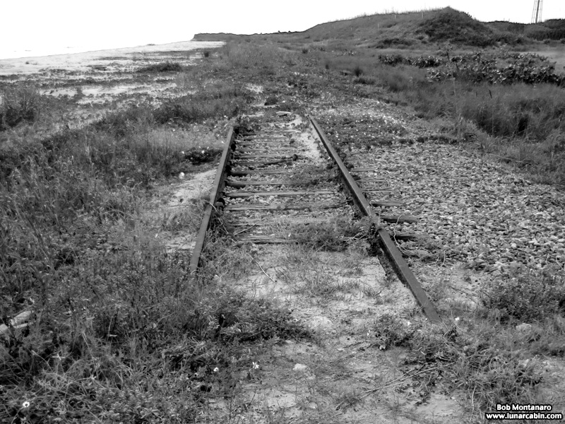 A section of railroad track from the old line that ran along the coast within Kennedy Space Center.