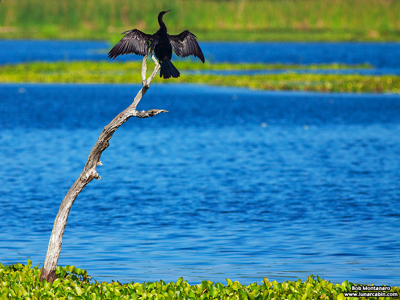 This one is easy. The scientific name is the same as the common name: scientific, Anhinga anhinga, common name, Anhinga. Birds of Florida by Pranty, Radamaker, and Kennedy relate how the bird’s name means “evil spirit of the woods” in the language of the Tupi people of the Amazon, which does not seem very fair since the Anhingas in Florida don’t seem very evil and spend most of their time around water rather than in the woods. Maybe they have a secret life ornithologists don’t know about? Local crackers might call the Anhinga the “snakebird” because of the way its long sinuous neck moves around much like the movements of a snake. A fast, agile, underwater swimmer, the Anhinga spears fish with its sharp bill as a way of catching dinner.