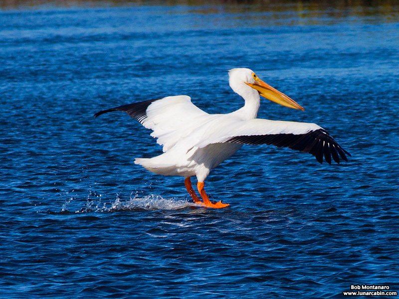 The American White Pelican on winter break visits Merritt Island National Wildlife Refuge. This large migratory bird likes to fly in groups. Group behavior is the key, since they are also cooperative feeders, floating around together coordinating driving fish into shallow water where they then scoop the fish up with their large bills.