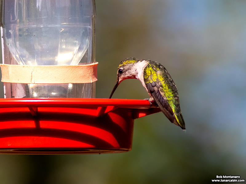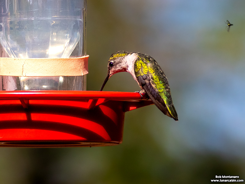 Until recently I have only seen two hummingbirds that I know of. Now, with the addition of a hummingbird feeder in the backyard, hummingbirds are a daily presence. Here is a random collection of hummingbirds drinking my homemade nectar concoction. These are all Ruby-throated Hummingbirds. About the only kind seen in my part of Florida.