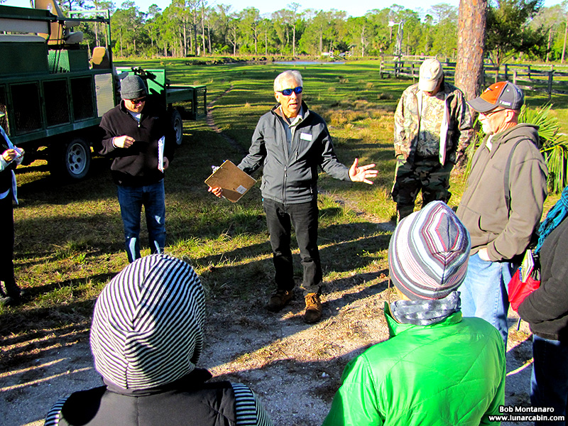 As part of the requirement of the conservation easement, the ranches are opened up for tours once a year. Here Ken Gonyo of the Indian River Land Trust provides background information on the ranches and the easement to one of the tour groups.