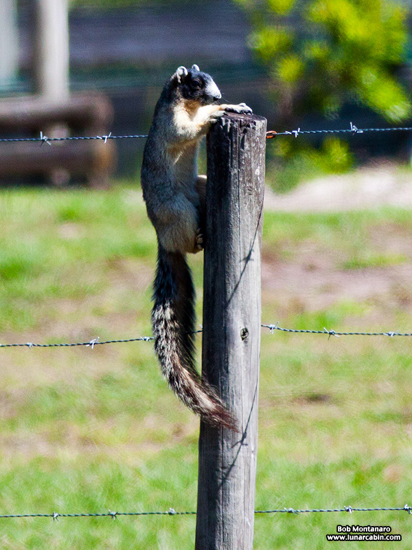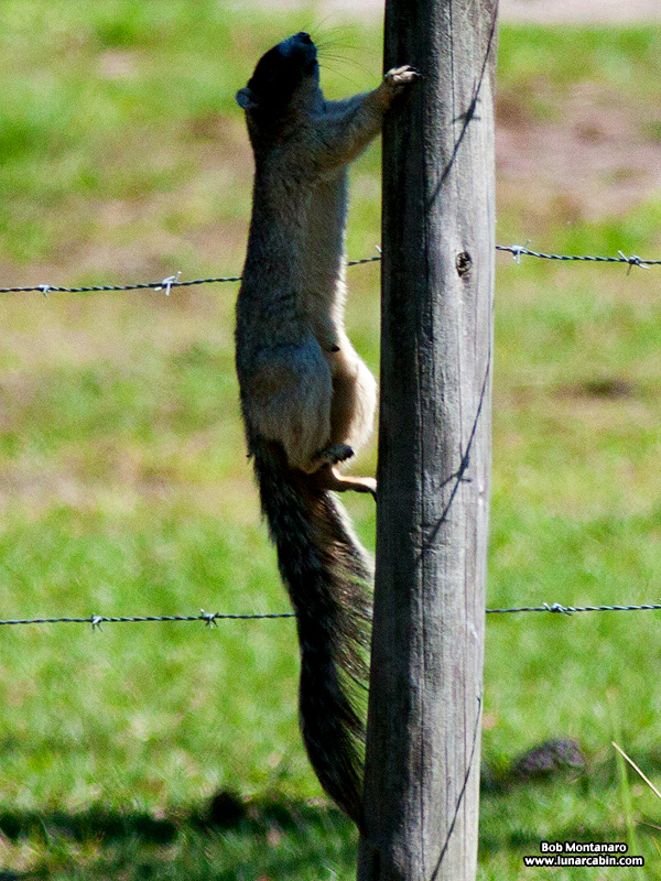 A true delight is the possibility of seeing a Fox Squirrel since many of their preferred habitats, open woods, pine and cypress stands, and mangrove swamps, occur on the ranches. Sadly, only this one individual was seen from a distance during one of the visits.