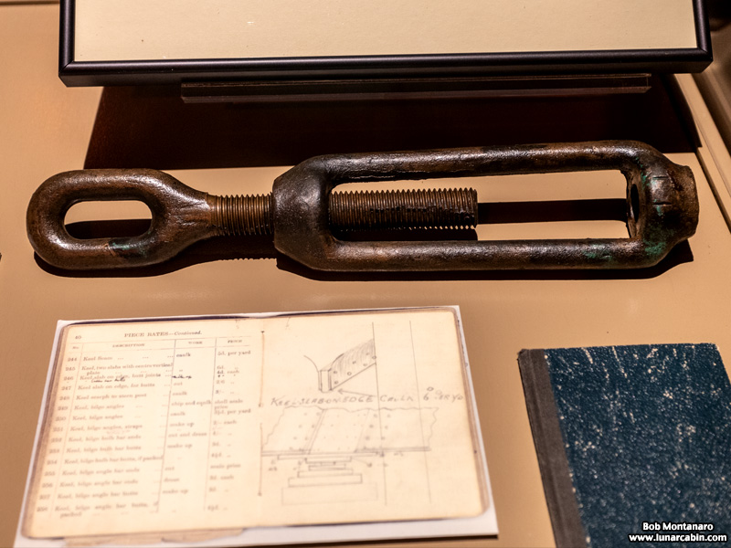 A lifeboat turnbuckle retrieved from the wreck used to secure a lifeboat to the Boat Deck when not in use.