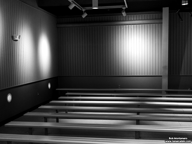 The Kennedy Space Center Launch Complex 39 Observation Gantry Briefing Theater in its currently disused state.