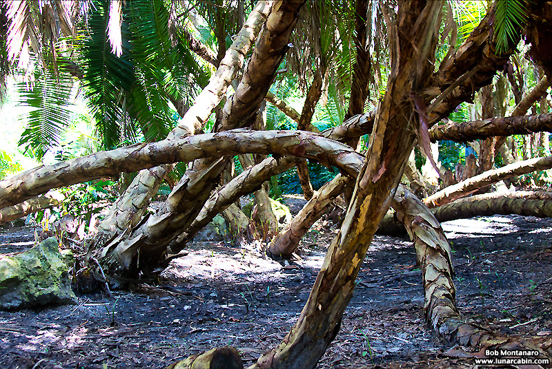Snakelike trunks of a foreign palm tree that I can’t recall the name of except that, importantly, they are not native to Florida.