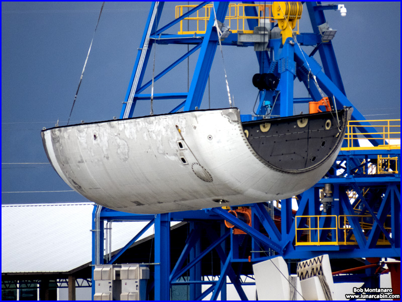 SpaceX has pioneered significant savings by recovering and reusing the payload fairings, two large clamshell structures that protect the payload during the atmospheric portion of flight and are then jettisoned. The fairing halves parachute gently to the ocean where they are recovered by a SpaceX ship and then brought back to port for refurbishment and reuse. The images below from Port Canaveral show the off-loading from the SpaceX recovery ship “Bob” of the two payload fairing halves used on the Starlink 6-32 mission.