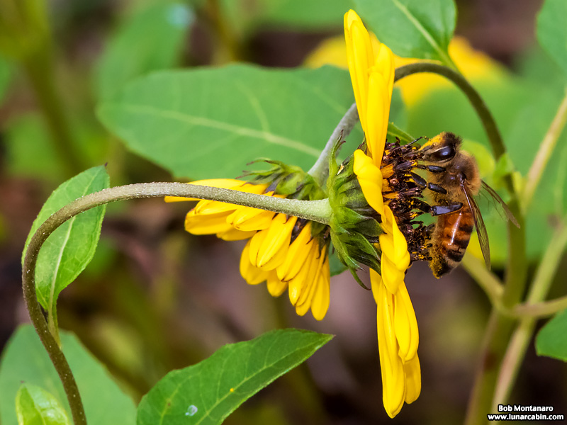 A honeybee forages through the flowers in the Audubon House landscaping at the Oslo Riverfront Conservation Area.