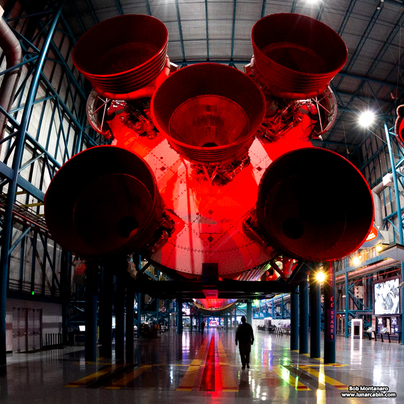 With time to spare waiting for the Crew-8 launch I was able to walk around the mostly deserted Saturn V Center at Kennedy Space Center to take a few fisheye shots. Here are the first stage engines of the Saturn V rocket on display towering overhead. According to the National Air and Space Museum, the cluster of five F-1 engines on the first stage produced more power than 85 Hoover Dams. More than enough to send astronauts to the Moon.